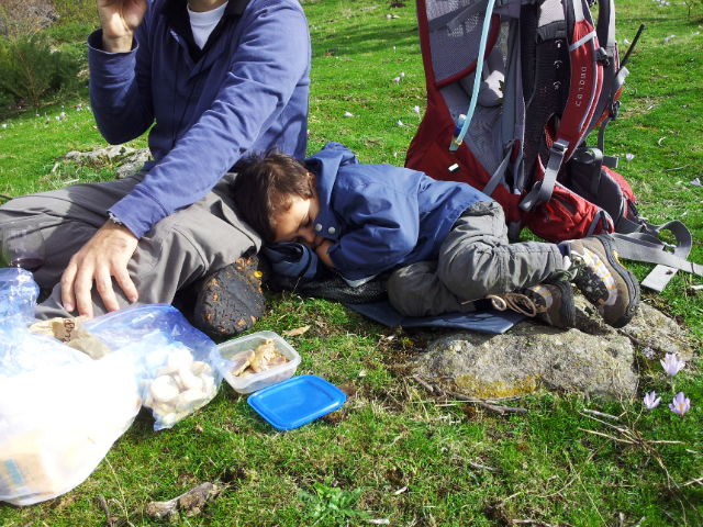 Tuvimos nuestro descanso en familia para comer, con alguna siestecita, cazadores expertos que cada día descubren nuevos animales e insectos y una cesta de setas para disfrutar del sabor del campo.